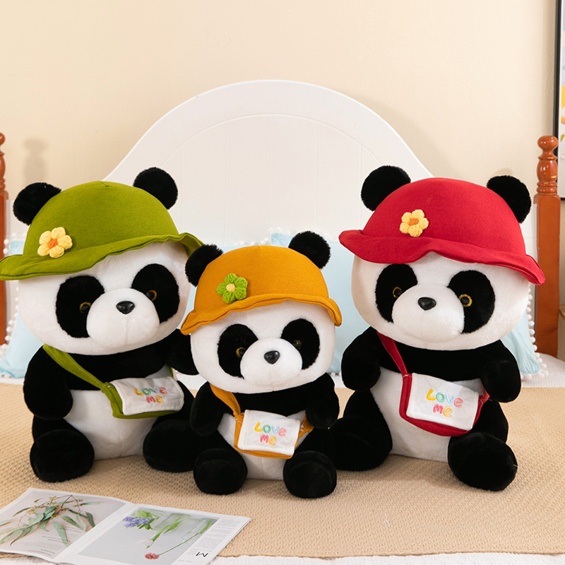 新型のリュックサックのパンダのぬいぐるみの子供の人形の結婚祝いは女子学生の贈り物の卸売りを投げます。