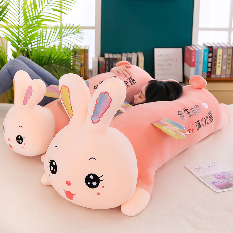 大きいサイズのカラフルな翼のウサギのぬいぐるみの漫画のウサギの子供の女の子は寝て足を挟んで枕の子供のプレゼントを抱きます。