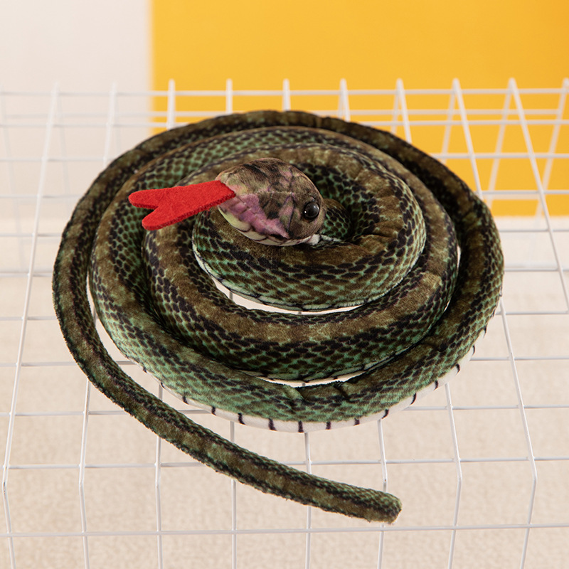 2025年蛇年マスコットがぬいぐるみを飾って蛇のぬいぐるみを怖がらせた