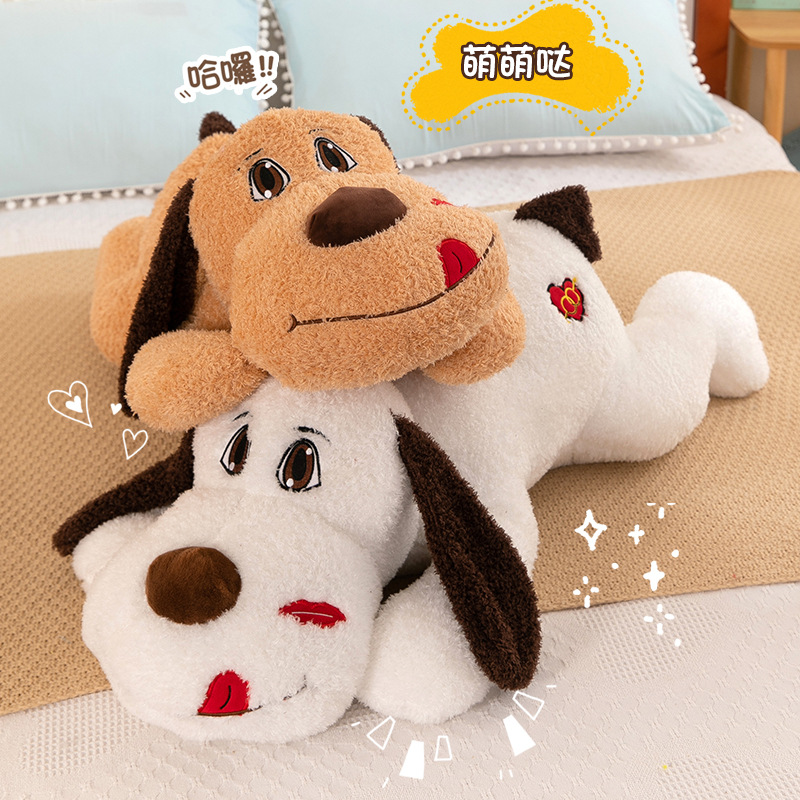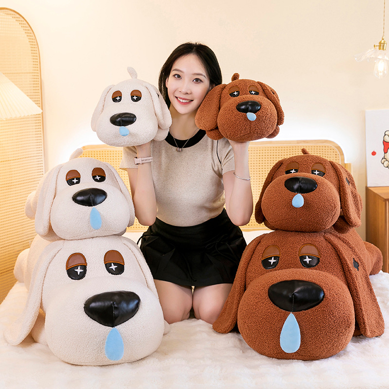 新商品の鼻水犬の大きいサイズの腹ばいタイプの子供が枕を抱いて遊んでいます。