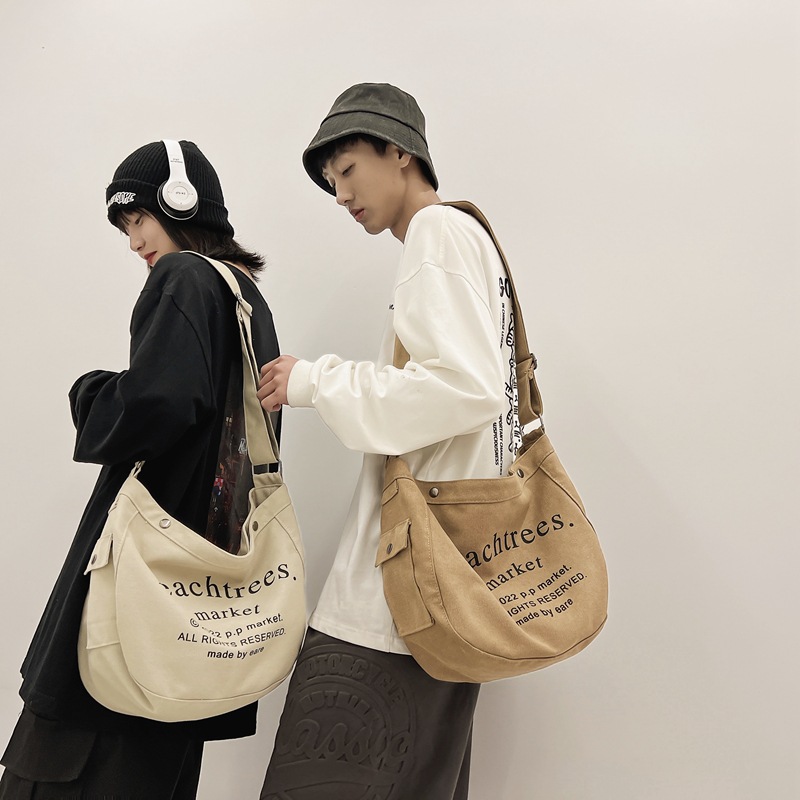 水洗いキャンバス斜めショルダーバッグ男性日本ファッションブランド大容量ショルダーバッグカジュアル純色学生ファッション郵便バッグ女性