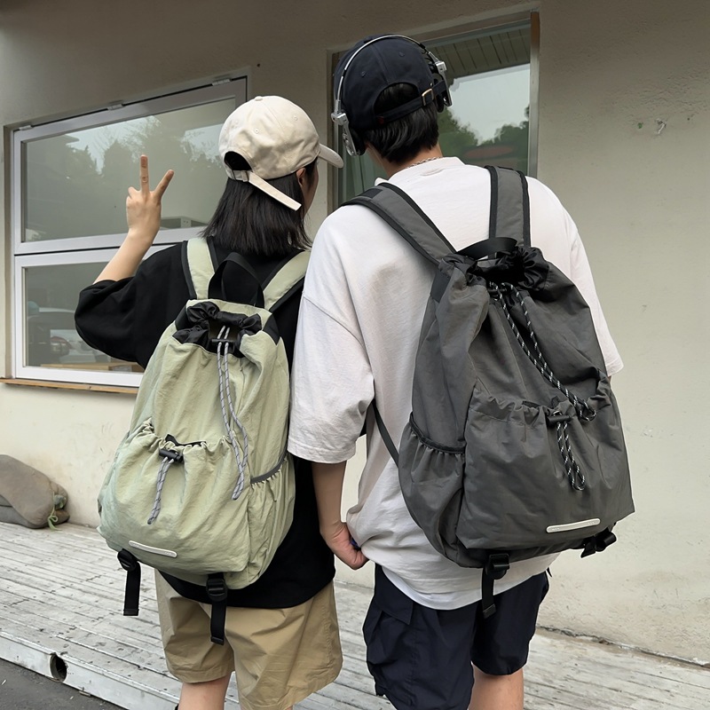 ひもを引くリュックサック男性2024新型ナイロンカバン男女通用大学生スポーツカップル旅行リュックサック