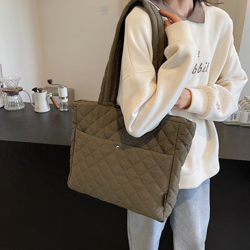 綿の服の包みの女性の2024韓国の新型の菱格の手提げの特の包みの軽い羽毛の包みのナイロンの大きい包みの通勤する包みのシングル肩