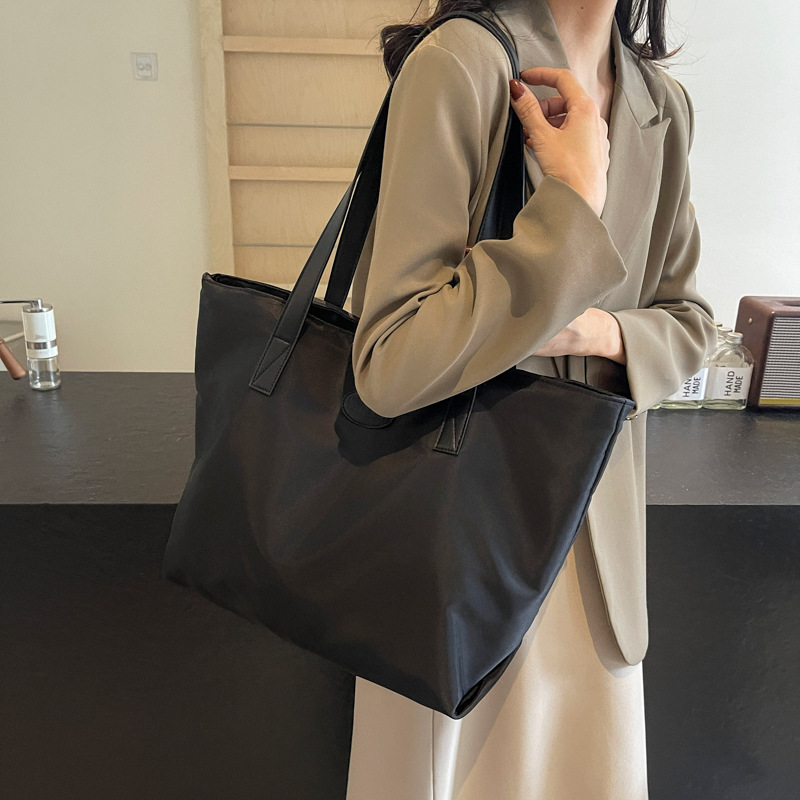 大容量シングル肩ナイロン布トートバッグ女性2024新型秋冬軽量通勤バッグ大学生授業バッグ男性