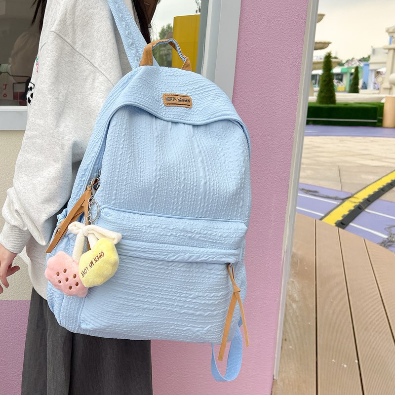リュックサック女子2024新型高校大学生カバン純色流行大容量リュックサックシンプルファッション風