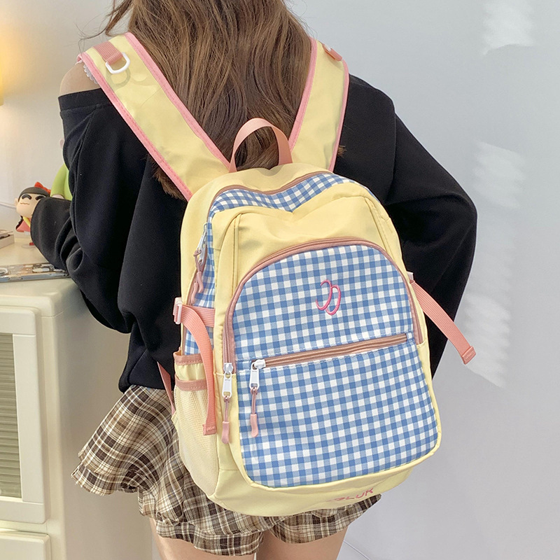 日本の格子の少女風のリュックサックの女性の大容量の軽やかなナイロンの布のリュックサックの大学生の百合のリュックサック