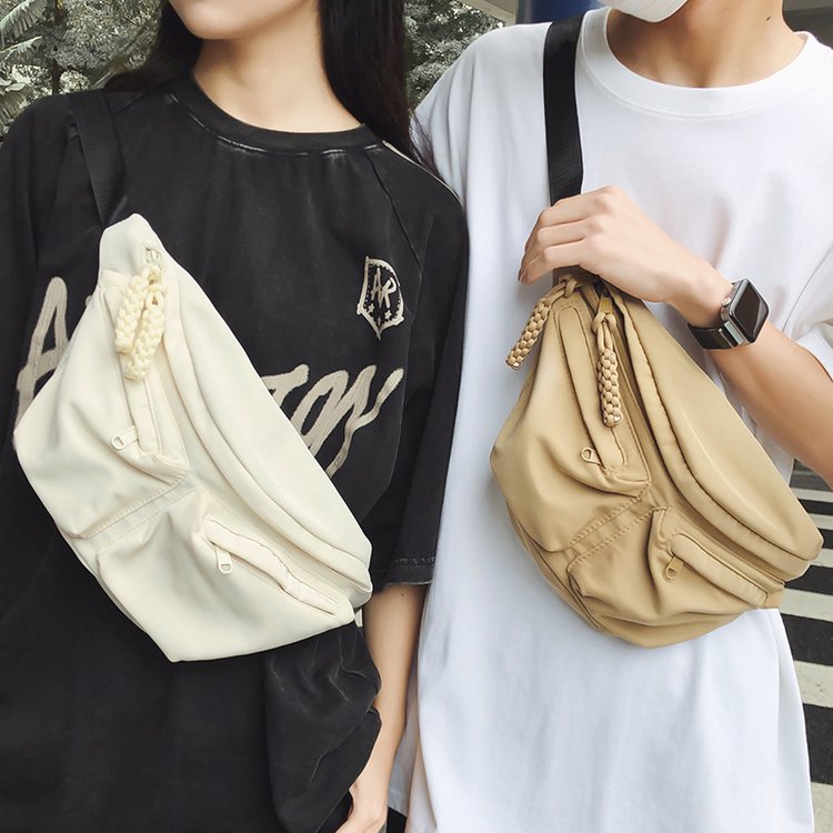 純色のナイロン布の包みの女性2024春の新型の小さい大衆の腰の包みのinsのカジュアルなしわの携帯電話の包みの斜め掛けの女性