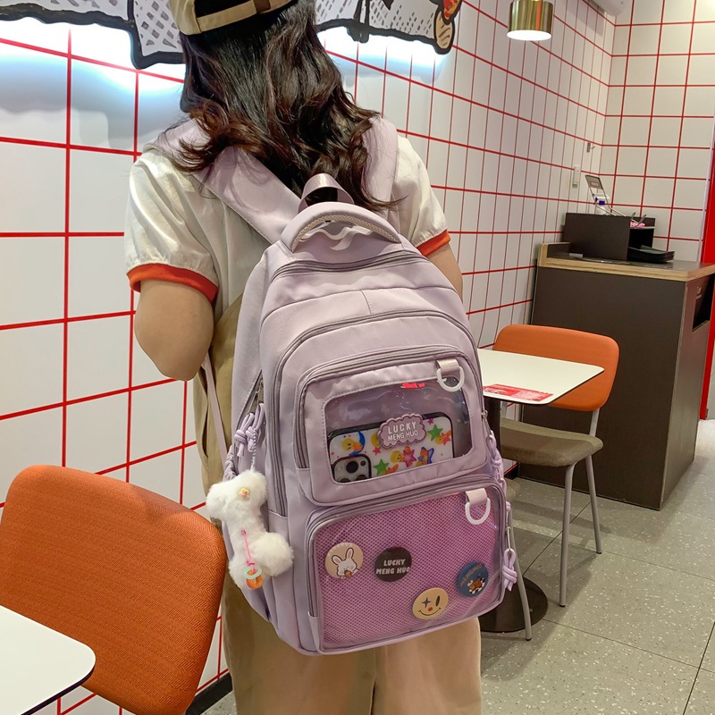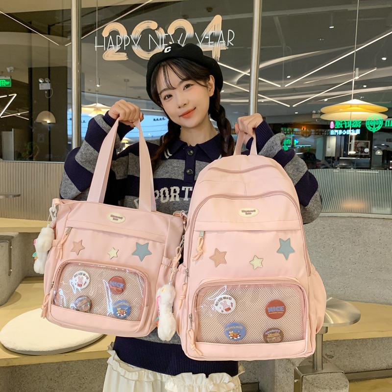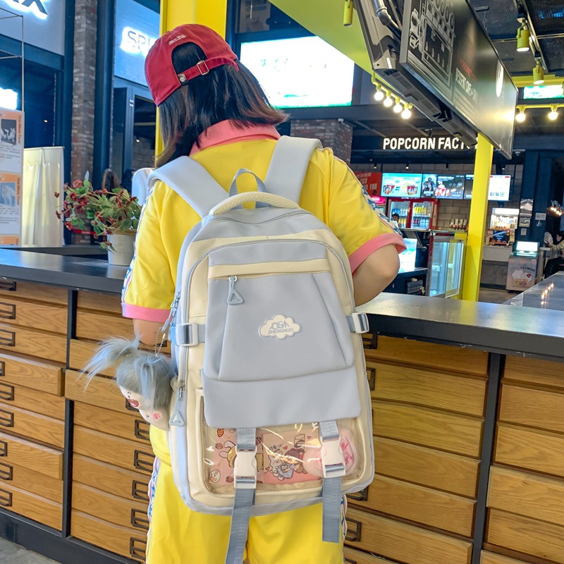 日系ins透明バッジ大容量百合学院風中学生リュックサック甘い少女旅行リュックサック