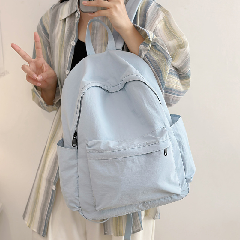 日系カジュアル文芸ナイロンリュックサック女性ins新型シンプルな純色カバン学院風しわ女性リュックサック