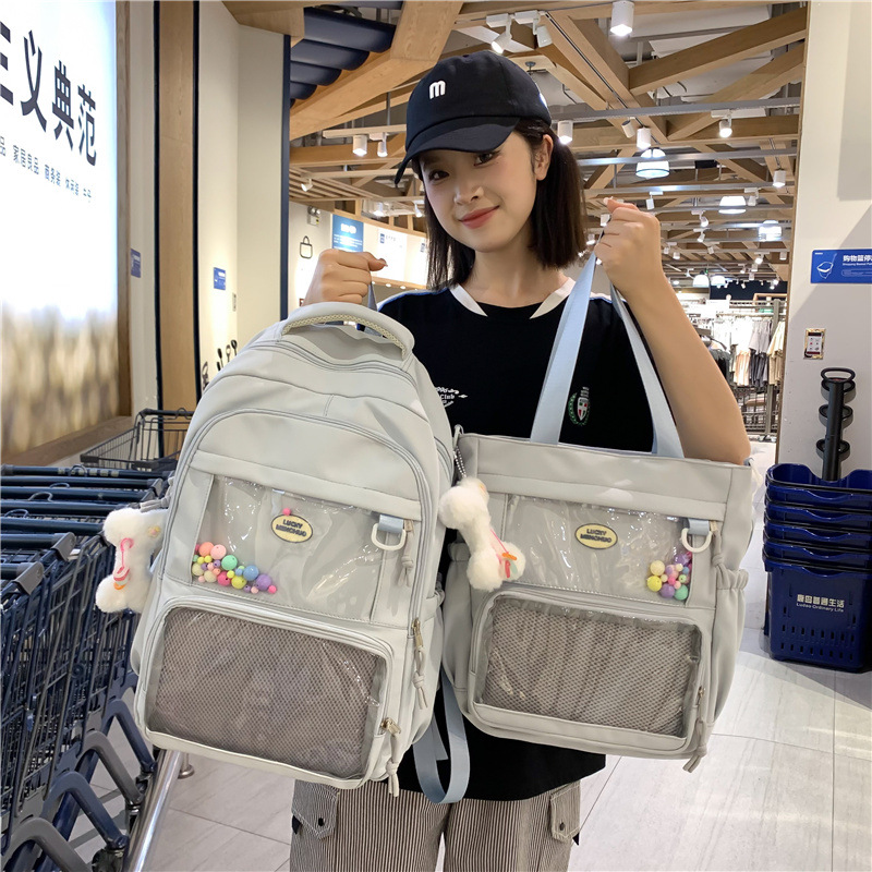 大容量の透明でシンプルなinsカバンの女性2024種類の学生の日本のシンプルなランドセルのかわいい学生のリュックサック