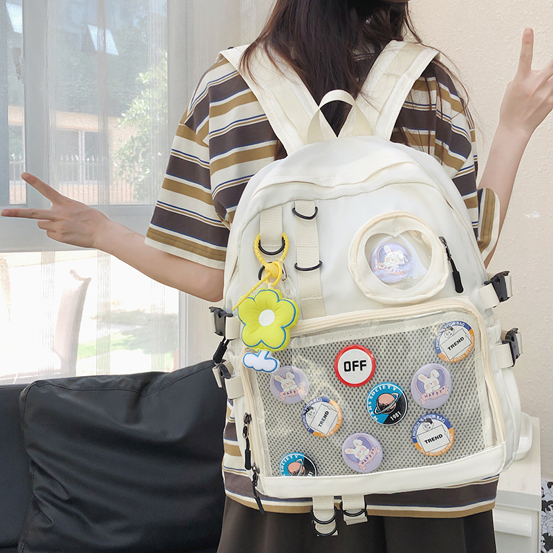 かばんの女性の日本のinsの小さいサイズの透明なランドセルの中学高校の学生の少女の大容量のキャンパスのレジャーのリュックサック