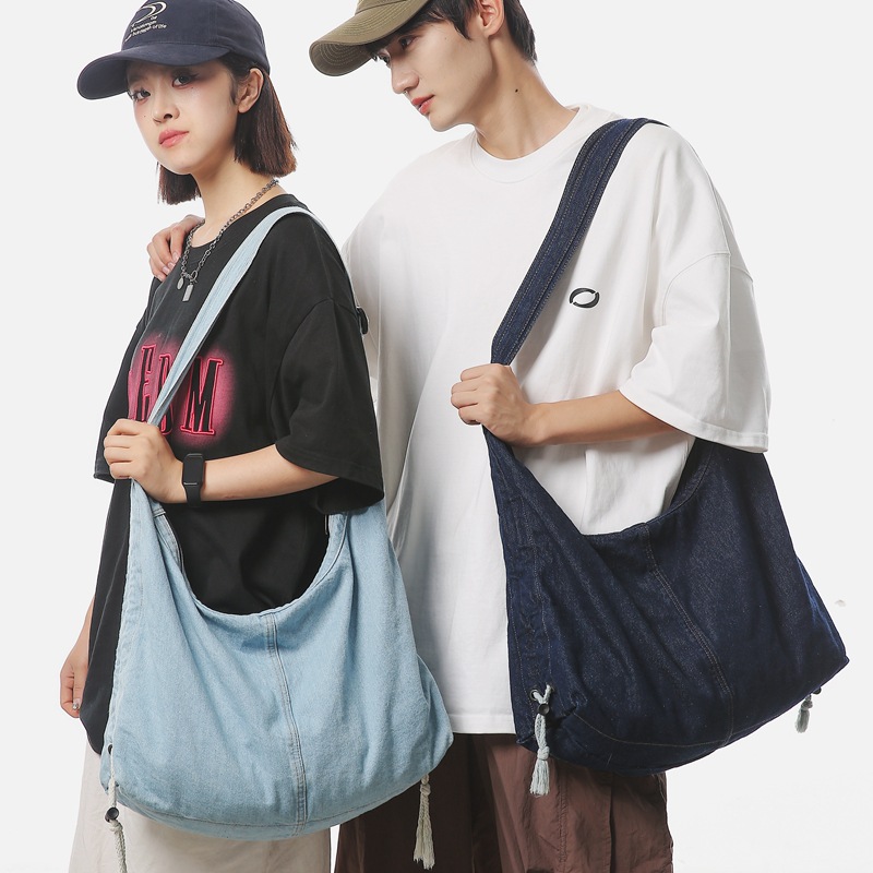 大容量デニムバッグ女性2024新型復古シングル肩斜め掛け布バッグ小衆百合通勤餃子バッグ