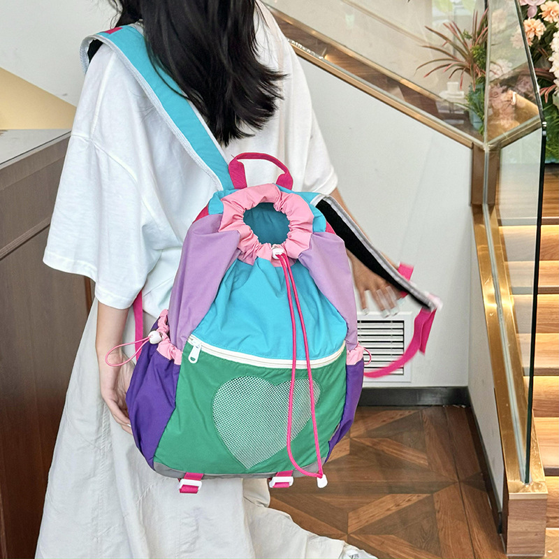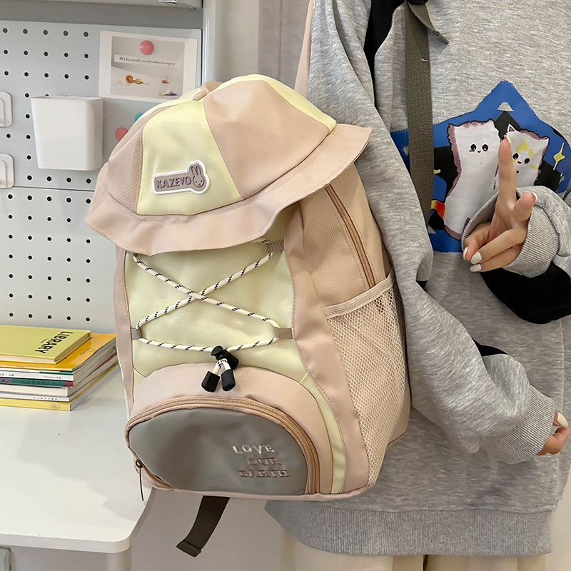 色合わせのかばんの女性2024の新型の少女の甘いリュックサックのキャンパスの女子大学生の新型の潮の大容量のリュックサック