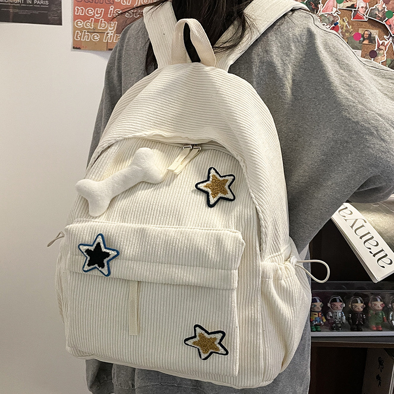 コーデュロイのかばんの女性2024種類の日系insかわいい少女大容量バックパック大学生の授業バックパック