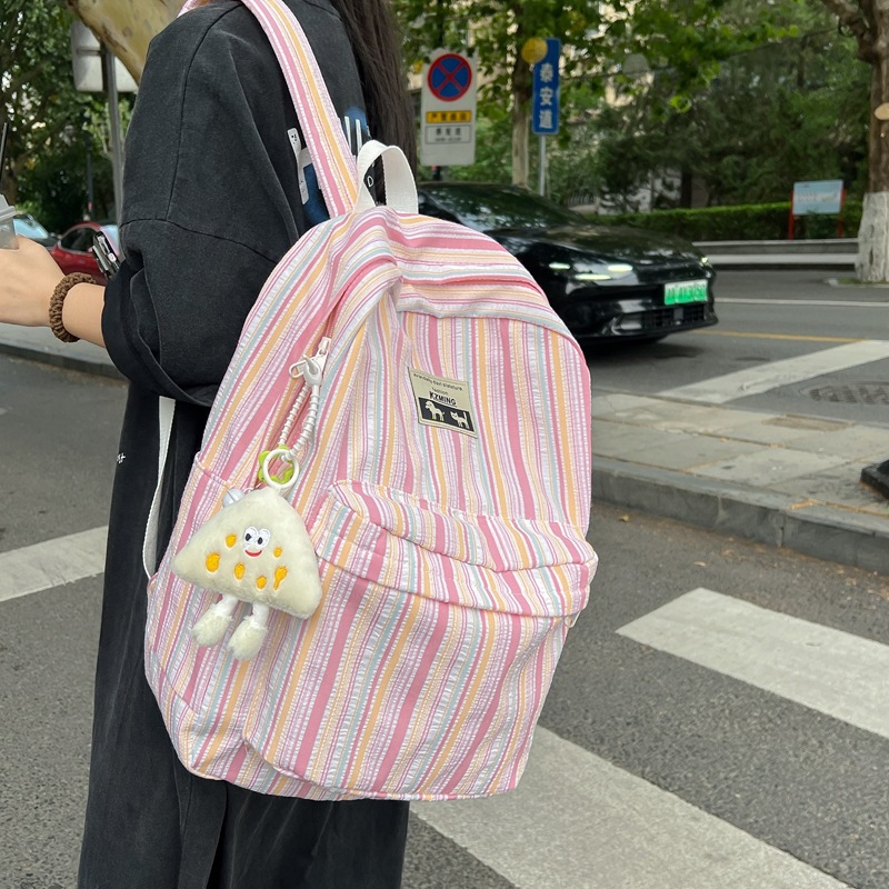 ストライプの軽やかなかばんの女性2024項の日系insの個性の小さい大衆のカジュアルなリュックサックの少女の百合のリュックサック