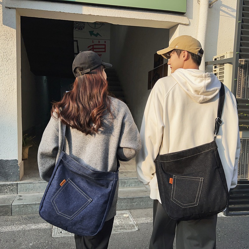 純色大容量デニムシングルショルダーバッグ女性通勤トート女性バッグ中学生男女タイプ授業用斜め掛けカバン
