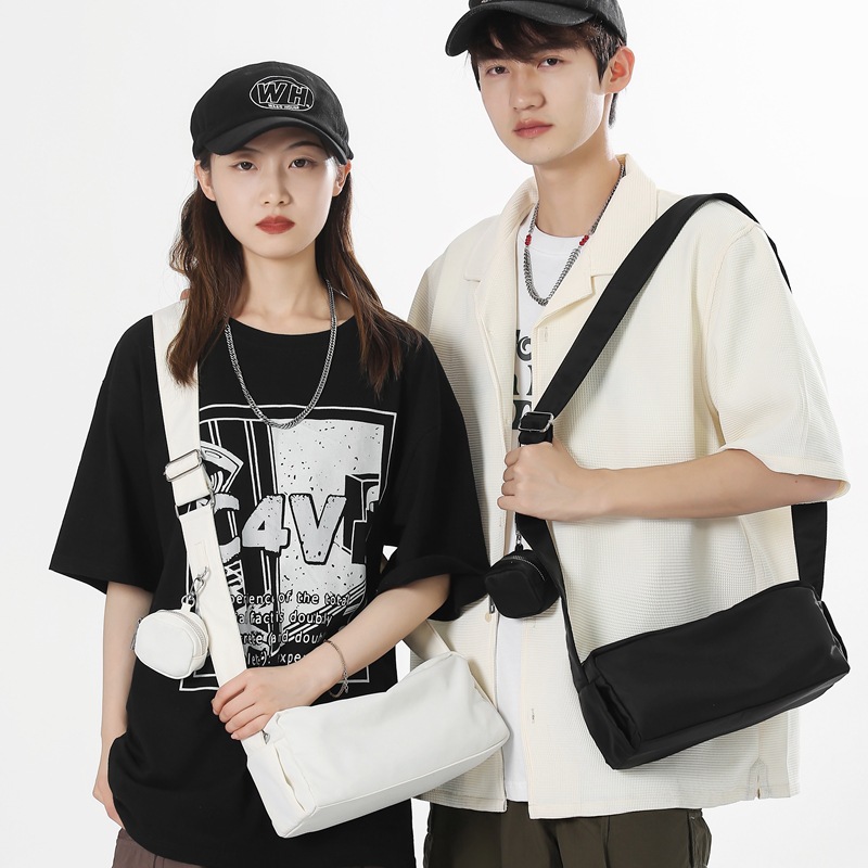 日本の斜めショルダーバッグ男性2024新型シンプルなシングル肩布バッグ女性バッグファッションスポーツ斜めショルダーバッグ学生バッグ