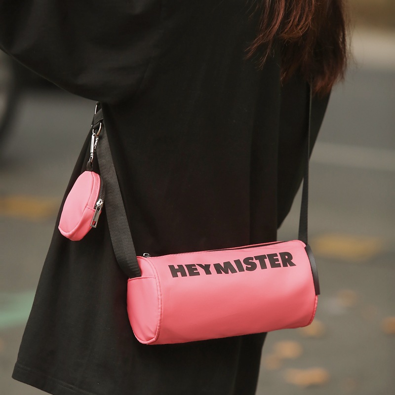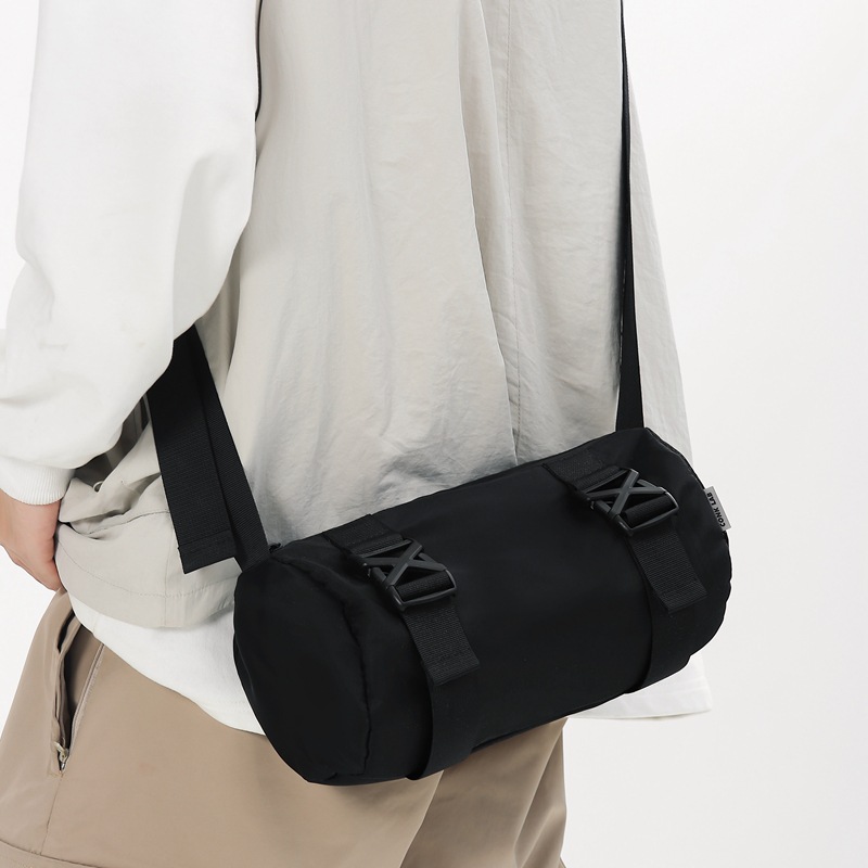 日系シンプルなスポーツ円筒バッグ男性2024新型アルファベットカップルファッション学生イヤホン軽量斜め掛けバッグ