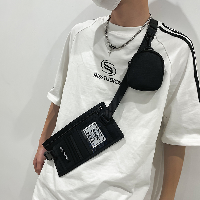 Ins潮牌胸包男性カジュアル日系シングルショルダーバッグ男性小リュックサック流行斜めショルダーバッグ男性新型ウエストバッグ