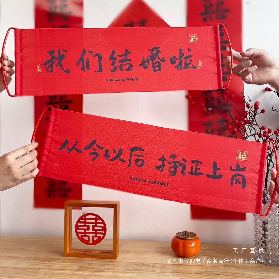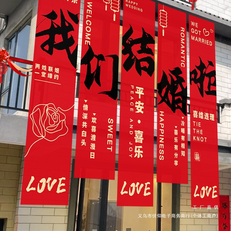 結婚写真の道具の領収書の旗の横断幕の雰囲気感の朝の服は私達が結婚しました。