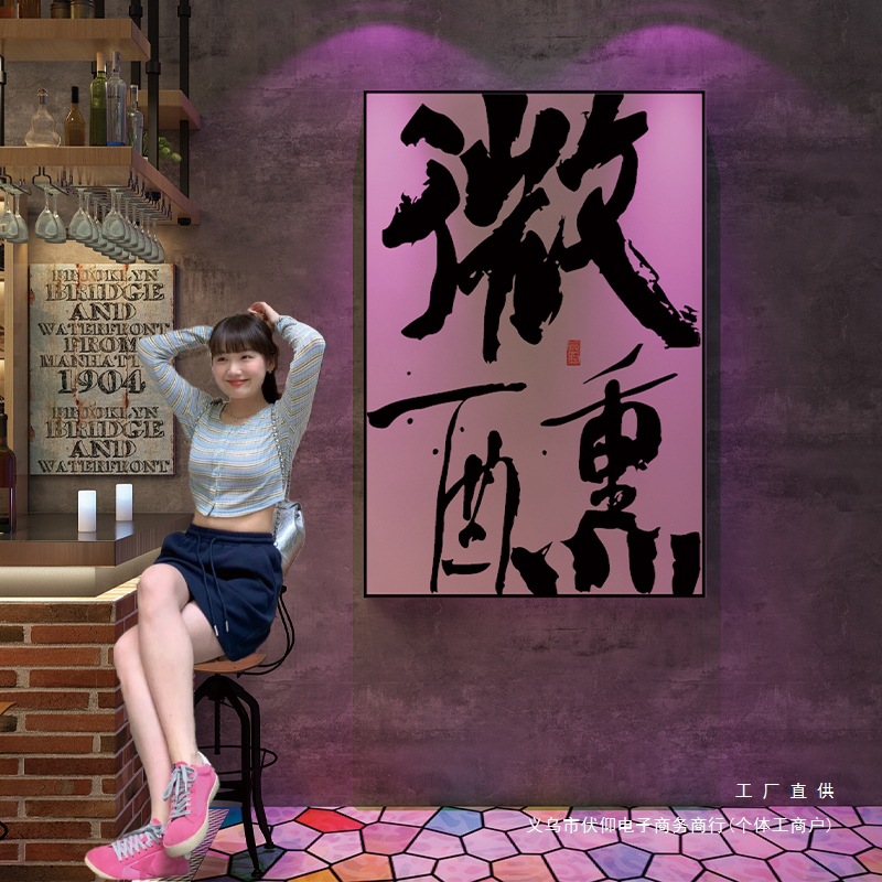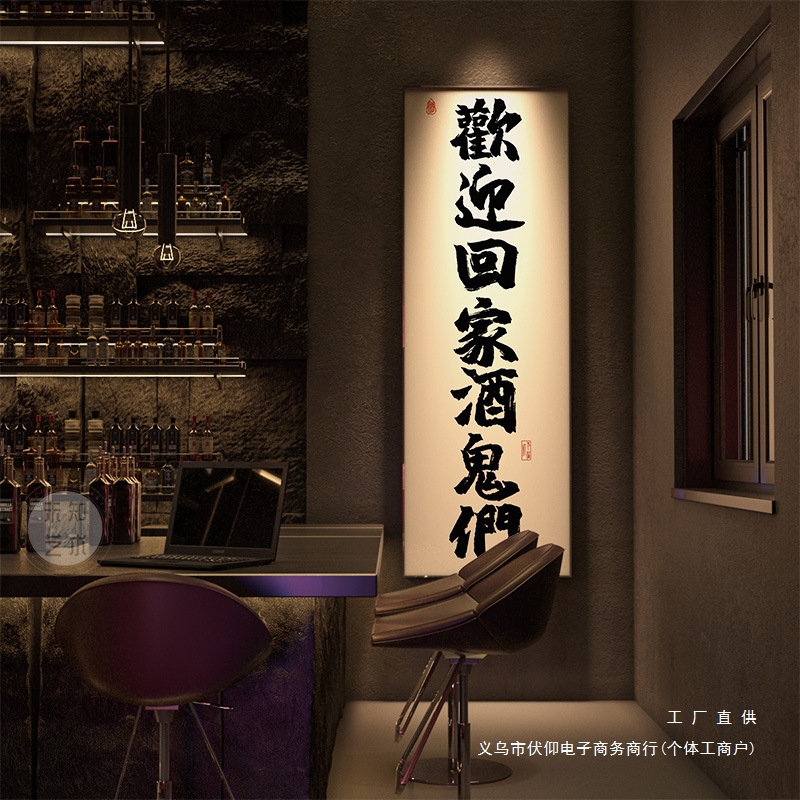 バーの背景の壁面の装飾画国潮の書道の書画の酒場はバーベキューレストランの縦版の壁画を掛けます。
