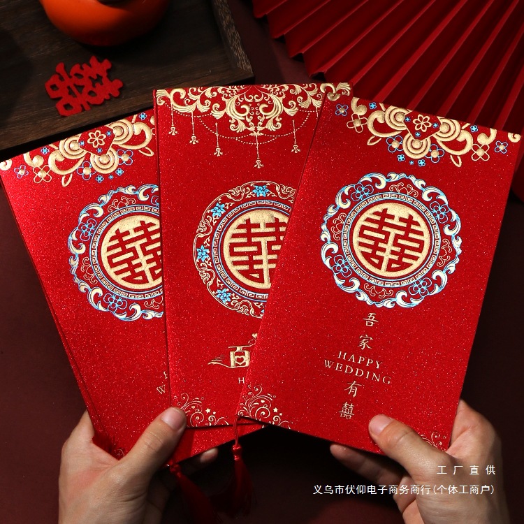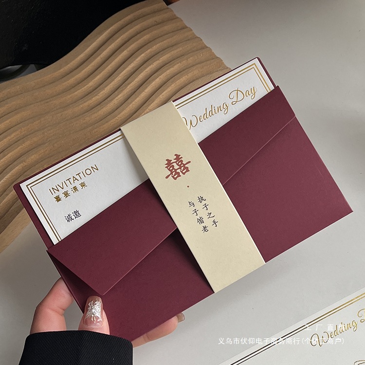 2025中国式新型結婚招待状喜帖節約国風小衆結婚式披露宴手書き印刷招待状