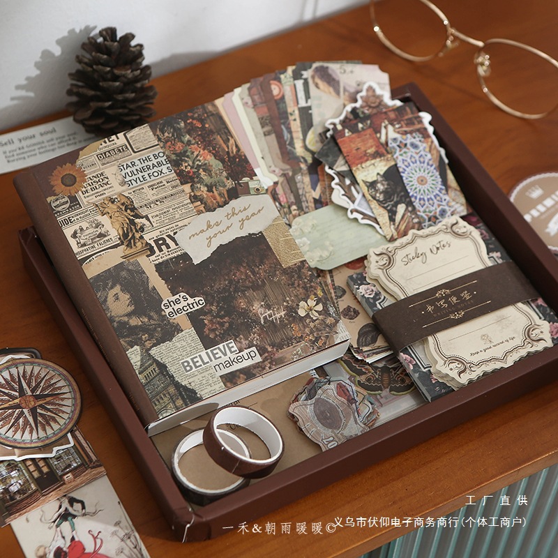 レトロ手帳素材セット大ギフトバッグ文芸高颜値diyシール便箋手帳ギフトボックス