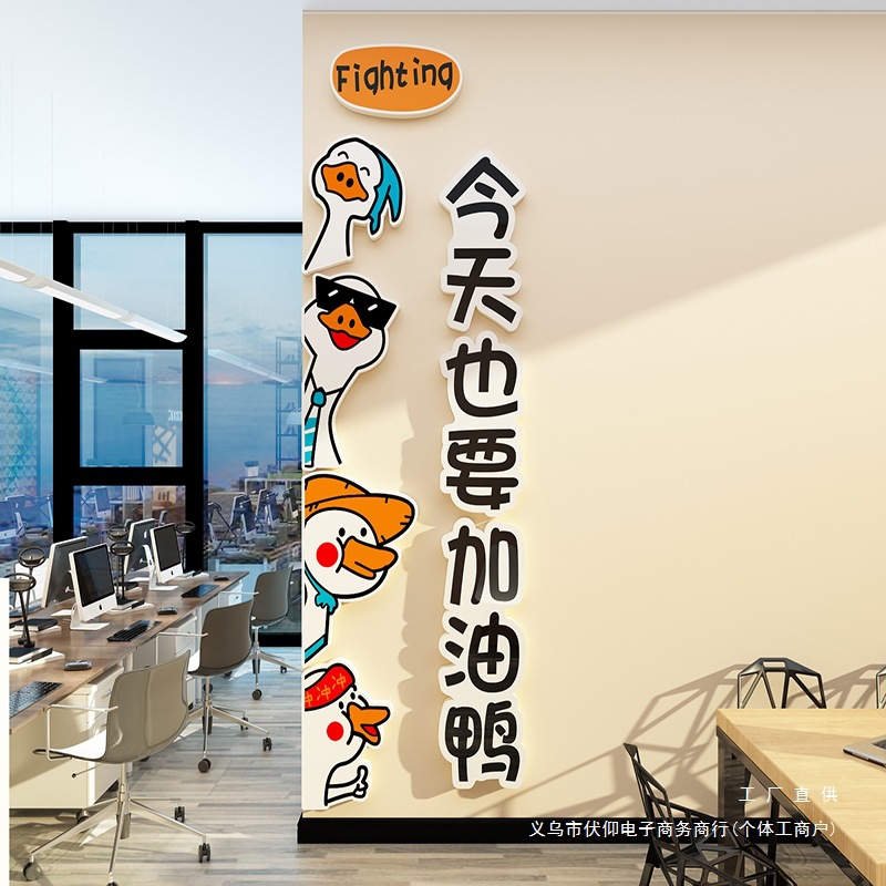 給油鴨オフィス雰囲気配置壁面装飾会社文化かわいい激励標語シール画