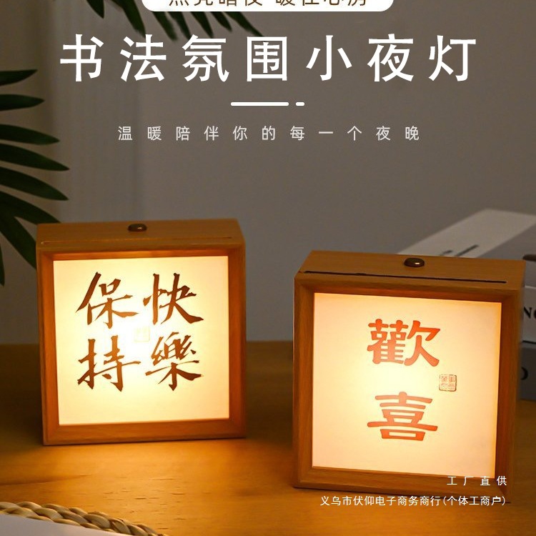 雰囲気灯装飾中国式復古風感小衆禅意玄関書道プレゼントデスクトップ小夜灯置物
