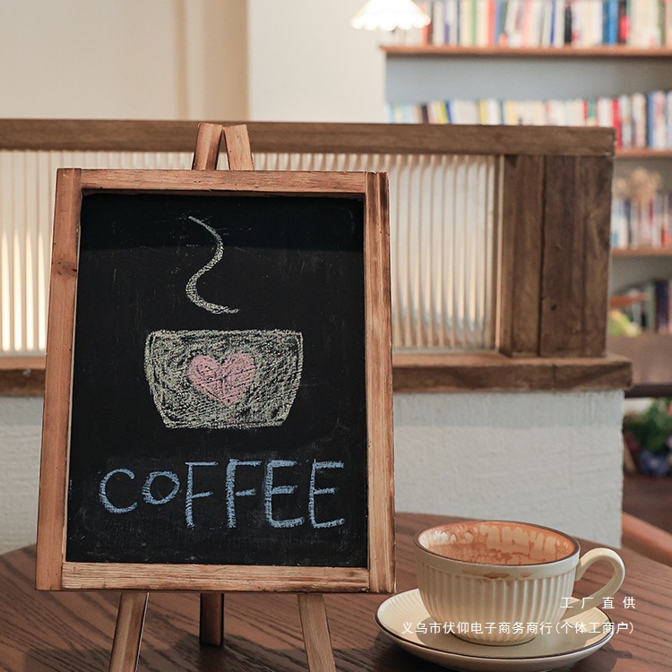 木製の小さな黒板のデスクトップにコーヒーレストランのミルクティー店の字を書くことができます。