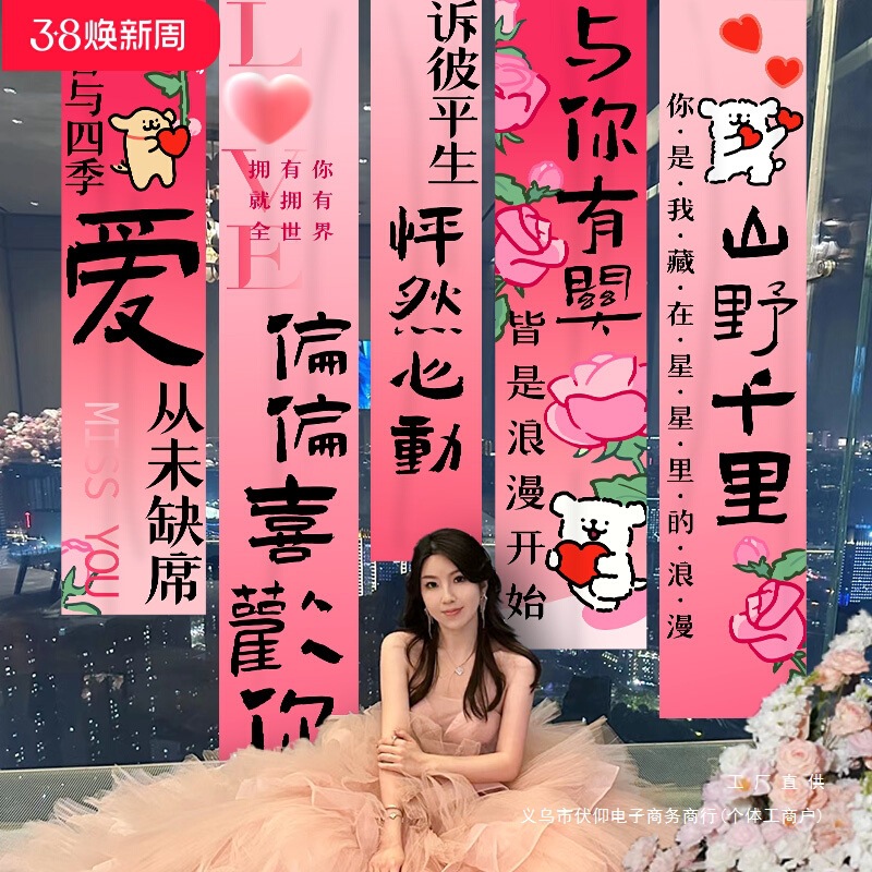 ライン子犬プロポーズ室内シーンアレンジ装饰おしゃれロマンチック部屋告白雰囲気感アイテム