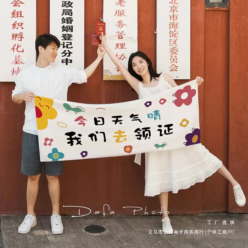 214バレンタインデーの結婚証明書の道具の横断幕の風船は写真を撮って登録します。