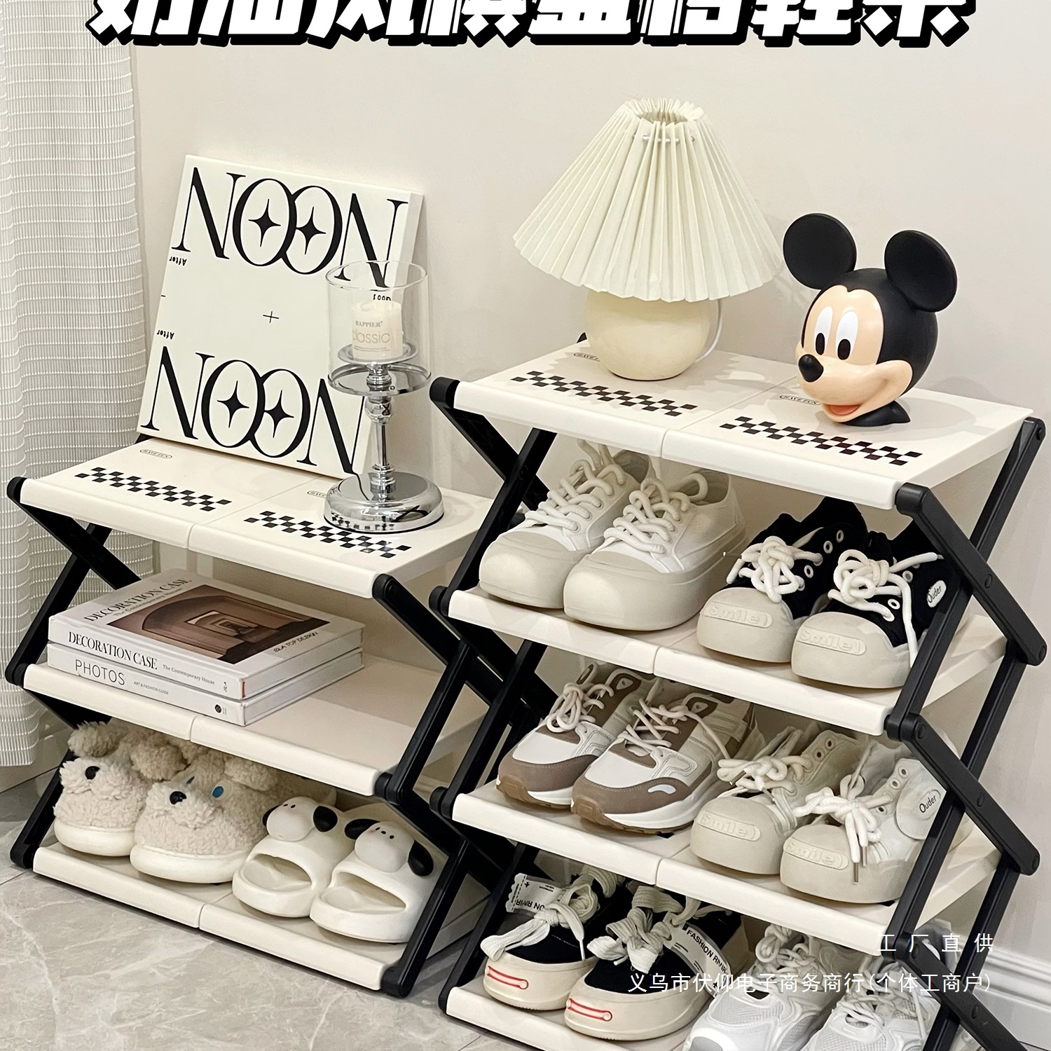 靴棚多層家庭用簡易門学生寮防塵組立小型ネット赤下駄箱収納棚