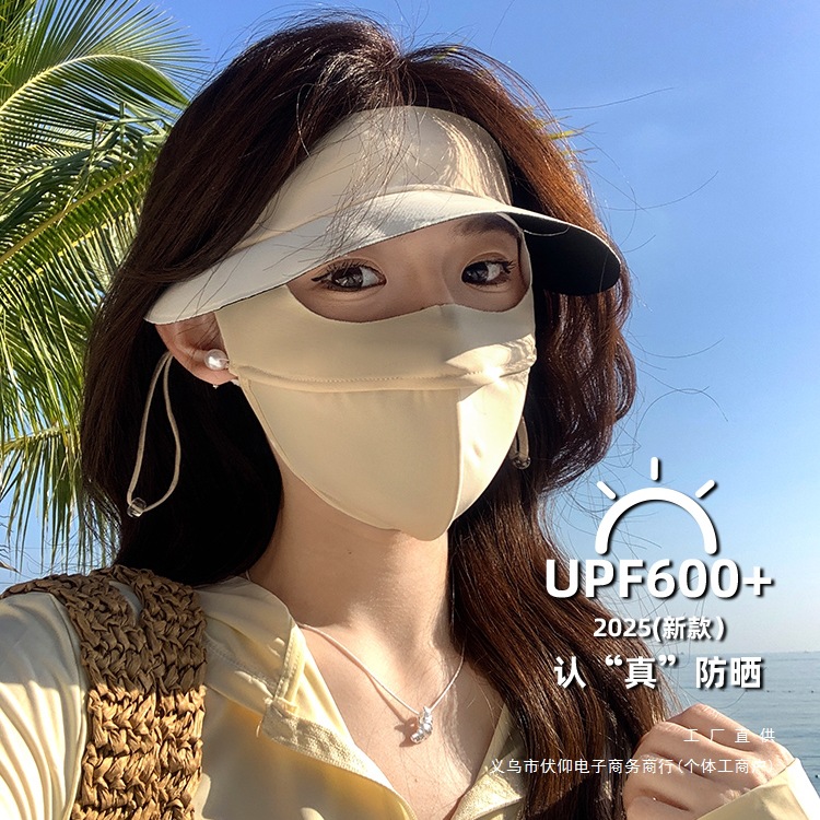日焼け止めマスク女性夏2025新型氷糸マスク全顔紫外線防止つば日よけ顔顔ジニ
