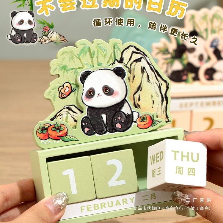パンダカレンダー2025年万年カレンダー卒業プレゼント装飾事務デスクトップ置物高颜値創意木造工