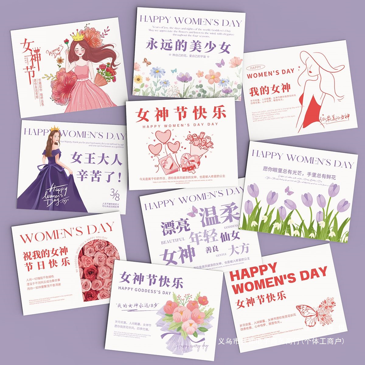 新しい女神の日のグリーティングカード38女性の祝日のカードの簡単な予約のメッセージカードの花屋の花束のケーキの店は注文します。