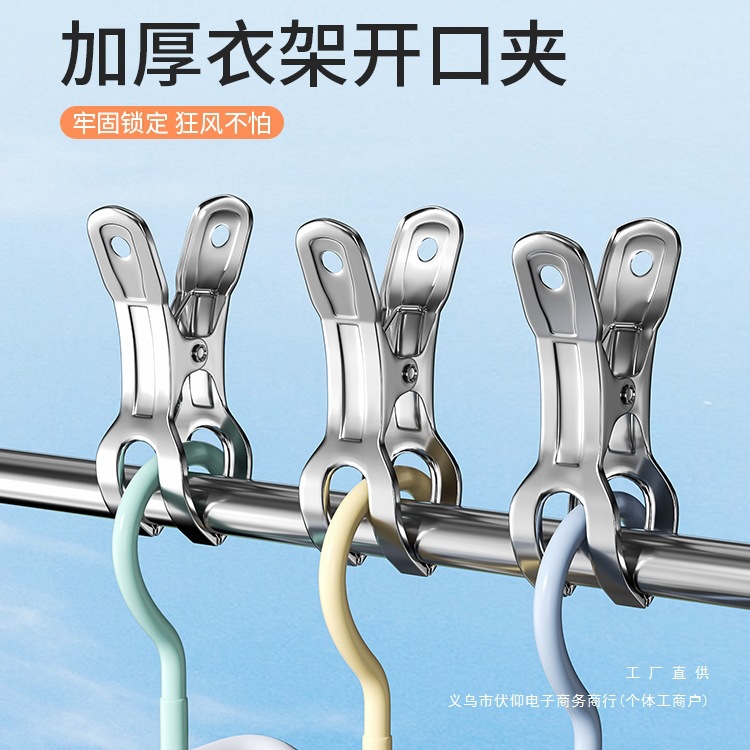 オープンクリップステンレス洗濯クリップ固定器服防風固定ボタン干し布団大クリップ