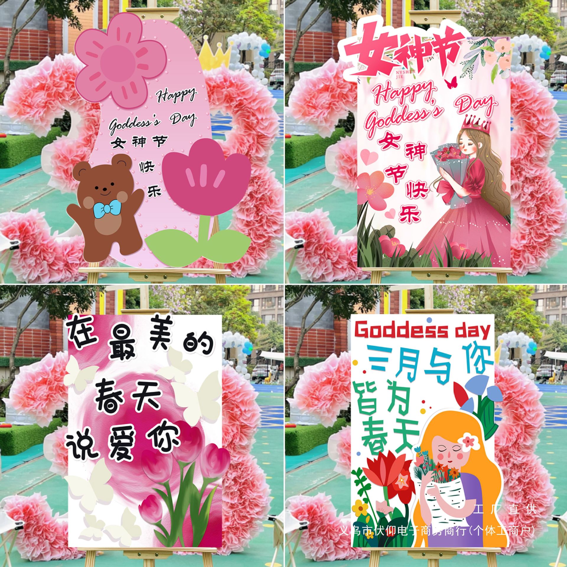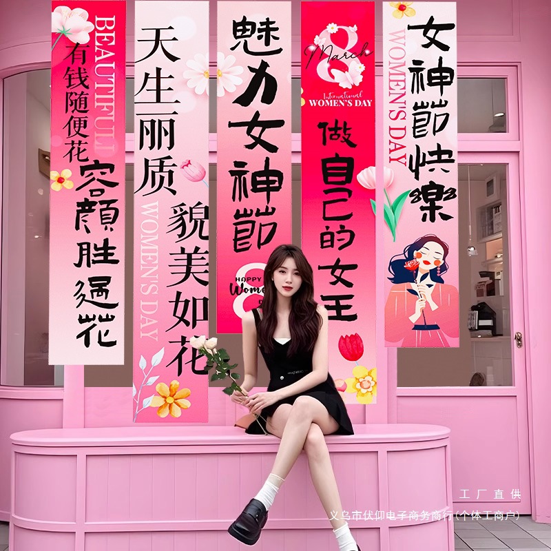 38女神の日の雰囲気配置装飾活動三八婦人の日に写真を撮る道具がデパートの景立札kt板を打つ