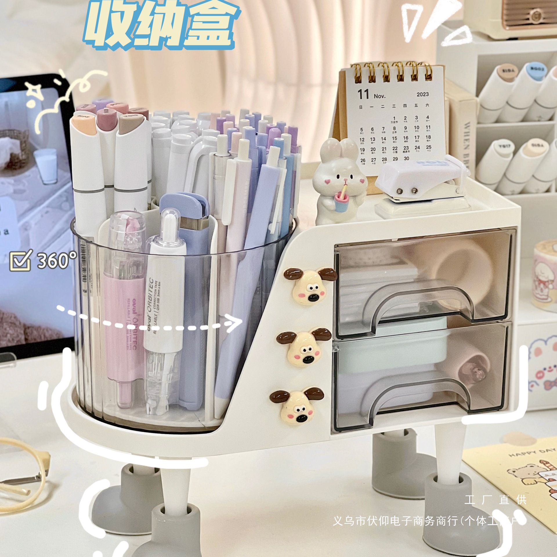 筆筒デスク文房具収納ボックス物置棚オフィステーブル上ステーション収納回転デスクトップ学生女子
