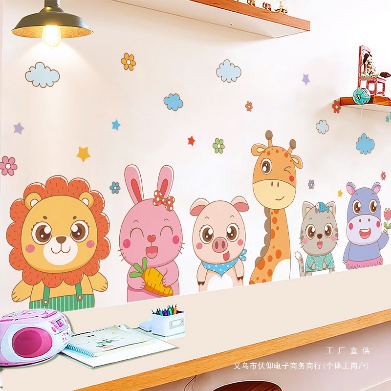 漫画の動物ステッカー子供のベビールーム寝室の壁壁レイアウト装飾ステッカーウォールステッカーウォールペイント壁紙