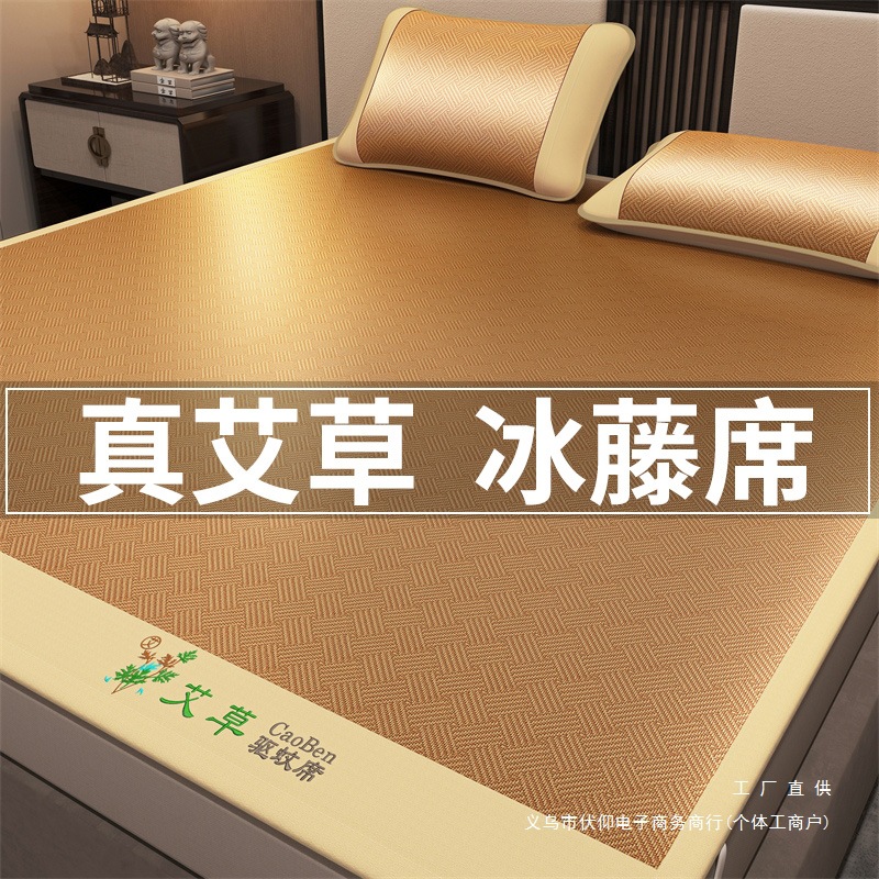 ヨモギアイスシルクマット夏 2025 新しいシングル寮洗濯機で洗える籐マット竹マット夏ソフトマットわらマット