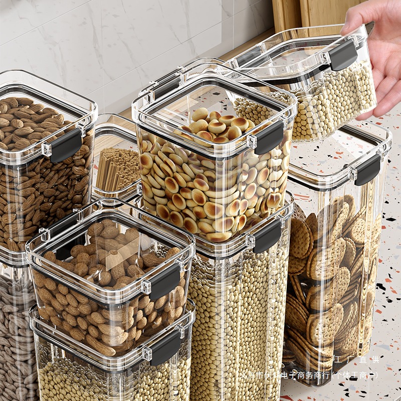密封缶穀物キッチン収納食品グレード透明プラスチック缶ボックススナック乾物茶保存缶