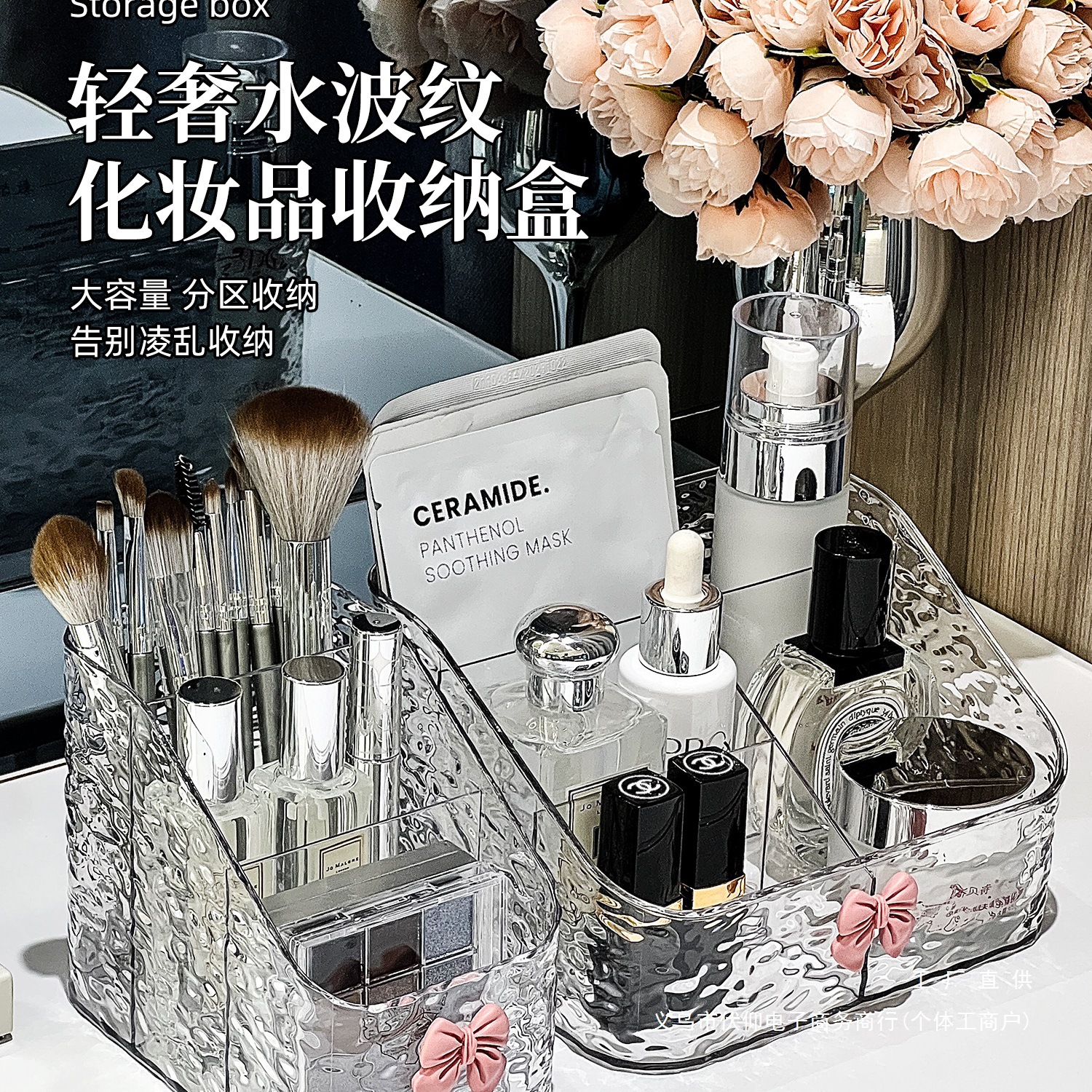 化粧品収納ボックス、口紅、スキンケア製品、軽い高級感のある水の波紋アクリル化粧ブラシ、雑貨、大容量収納ラック