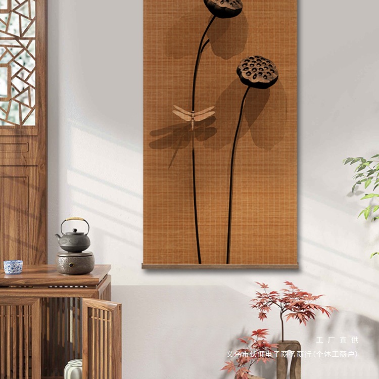 新しい中国風の蓮竹吊り絵禅トンボ蓮の実壁画玄関装飾絵画垂直経典スクロール絵画茶