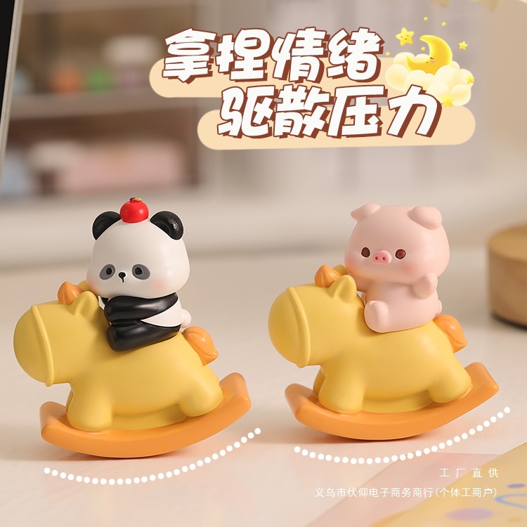 かわいい揺れる木の木馬の小さい置物のステーションの事務室のデスクトップの装飾の解凍の情緒の安定の贈り物