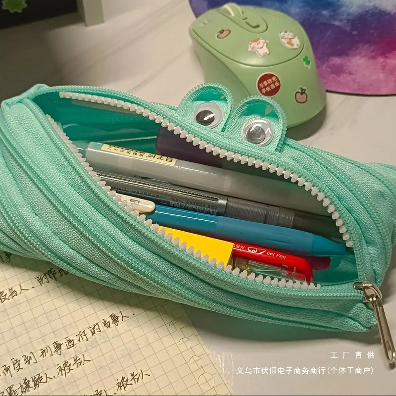 ジッパー鉛筆バッグ、クリエイティブな文具、シンプルでかわいい、男性と女性向けの漫画の大容量キャンバスリトルモンスター