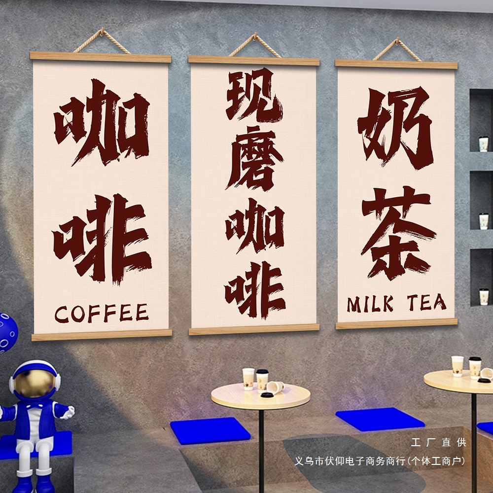 コーヒーコーナー配置カフェホール宣伝広告ポスターミルクティー店バー壁面壁雰囲気装飾画
