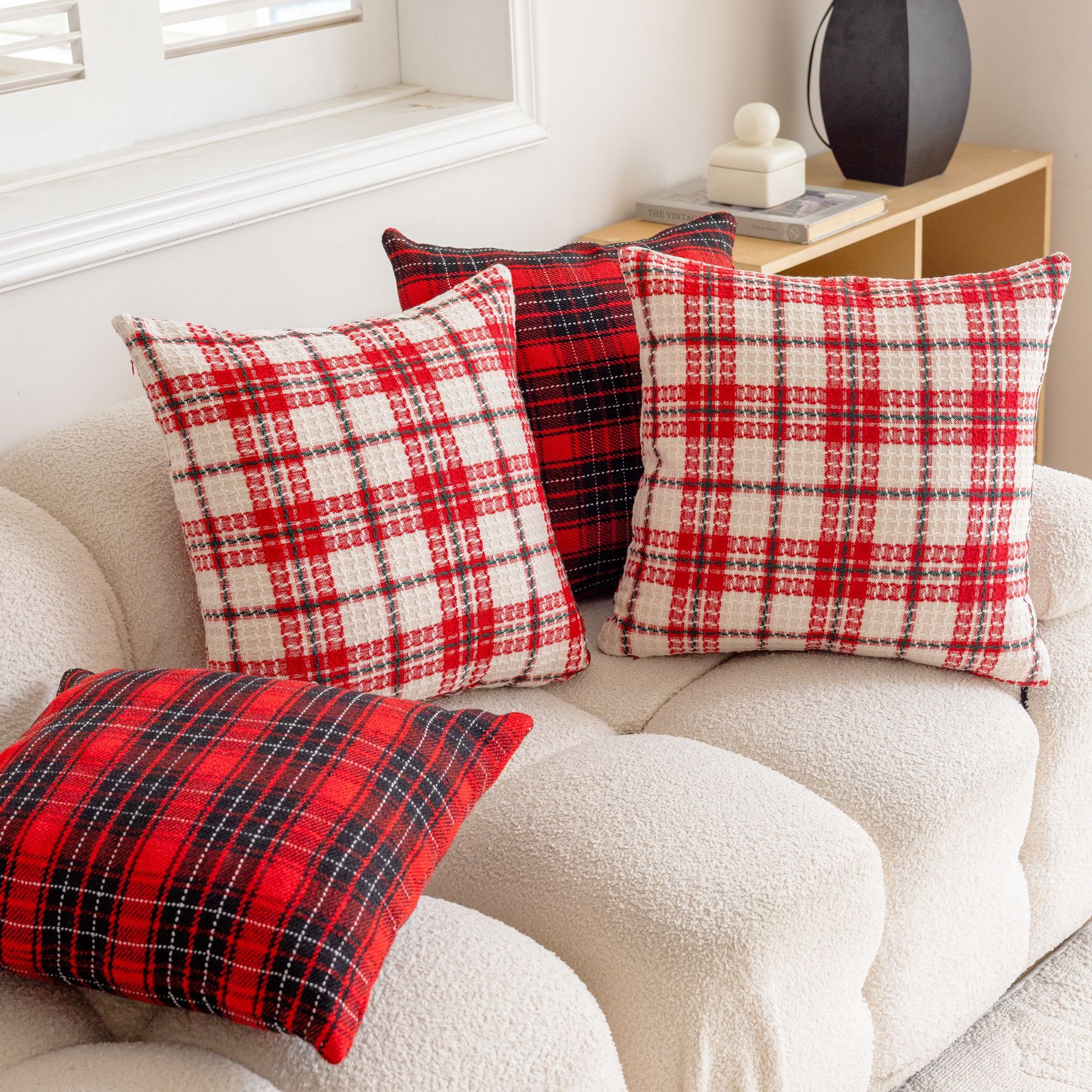 新しいクリスマスソファ枕カバーアマゾン速達 Xiyin temu チェック柄クッションインターネット有名人輸出クッション