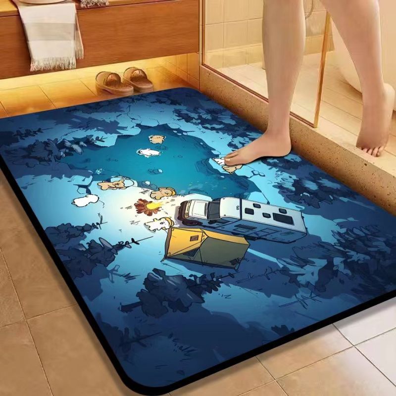 漫画珪藻泥ホームノンスリップ吸収性フットマットホームバスルーム玄関ドアマット浴室ドアマット卸売