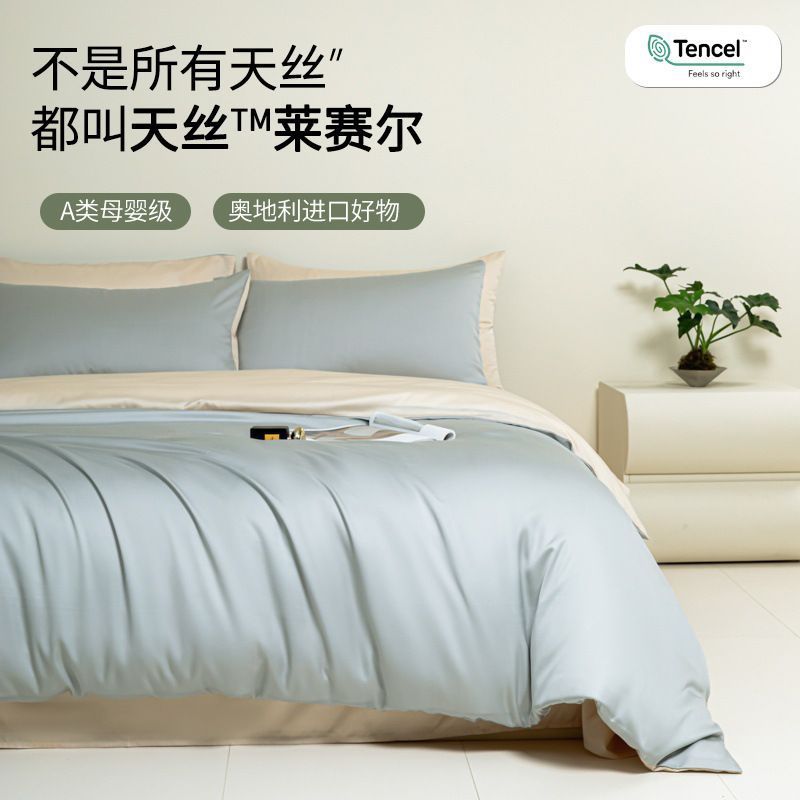 マタニティグレード 100 カウント レンチング テンセル 4 点セット 夏用シルキーヌードスリーピングシーツとキルトカバー アイスシルクベッドシーツセット